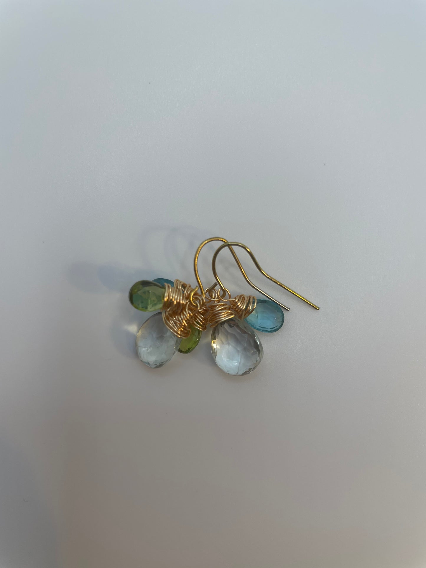 Ørepynt med grønn ametyst, peridot og apatitt med 14k valset gull på 925 Sterling sølv